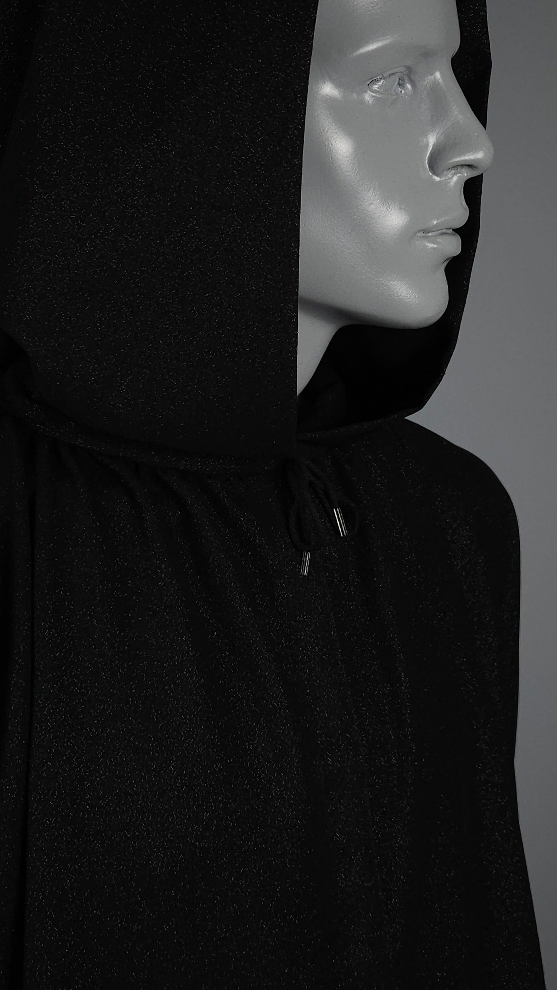Collector's Edition robes are handmade with custom iconic sparkle fabric. There is a velcro piece inside the hood to attach a mask if it is desired.